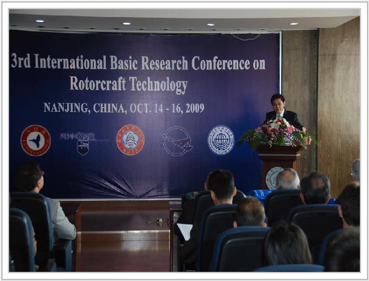 第三届旋翼飞行器技术基础研究国际会议(The 3rd International Basic Research Conference on Rotorcraft Technology)于2009年10月14-16日在我校举行。本次会议由美国直升机学会、美国宾州大学、南京航空航天大学、中国航空学会主办,我校承办。我校副校长聂宏教授担任大会主席,航空宇航学院高正教授和美国直升机学报(Journal of American Helicopter Society)主编Ken Brentner教授担任大会学术委员会主席,航空宇航学院夏品奇教授和美国宾州大学Edward Smith教授担任大会组委会主席。来自美国、英国、意大利、荷兰、日本、韩国、土耳其和中国等8个国家的直升机领域专家、学者和我校研究生共200余人参加了本次会议。 大会在我校明故宫校区航空宇航学院大楼举行,设1个特邀报告厅和3个专题报告厅。8位来自世界各地的知名专家学者应邀做了专题报告。40余名代表分别就直升机设计与试验、直升机动力学与驱动系统、直升机空气动力学与飞行力学等3个专题做了学术报告,其中有我校10名博士生。大会还出版了有国际书号的会议论文集《Basic Research Advance in Rotorcraft Technology》。