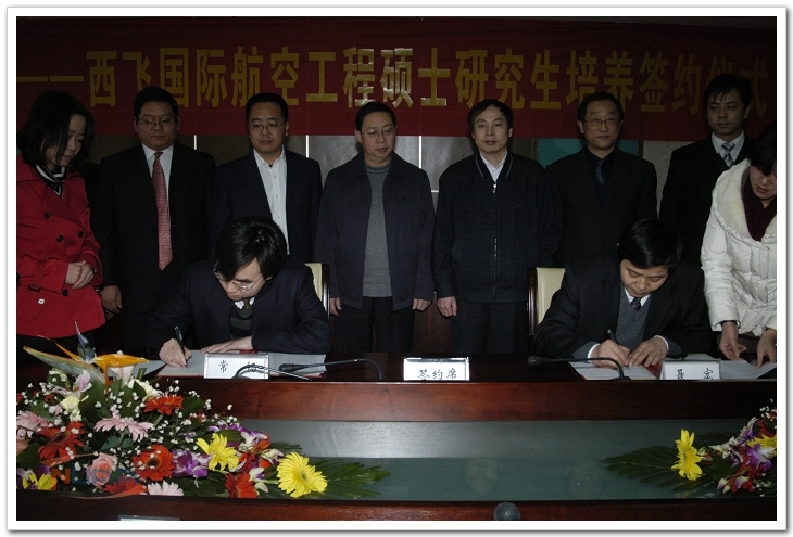 3月12日上午,西安飞机国际航空制造股份有限公司与我校的2010年工程硕士培养协议签字仪式在我校举行。我校副校长聂宏,西安飞机国际航空制造股份有限公司(以下简称“西飞国际”)党委副书记、副总经理常畅,学校相关部门负责人等参加了了签约仪式。会议由研究生院常务副院长夏品奇教授主持。
