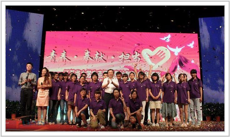 7月26日,江苏省大学生志愿服务计划2009年颁奖暨2010年出征仪式在我校举行,副省长李小敏出席并勉励广大青年志愿者。省委、省政府相关部门以及参加2010年西部计划、苏北计划、绵竹计划的700余名志愿者参加了此次活动。 李小敏副省长在讲话中提到,他希望大学生志愿者富于远大理想,报效祖国、服务人民、砥砺自我,顺利实现从大学生到社会主义建设者的角色转变;勤于学习实践,切实增强社会责任感和对人民群众的感情,培养积极进取的精神和脚踏实地的作风,为今后成长奠定良好基础;乐于服务奉献,大力践行志愿精神,为发展谋对策,为基层办实事,为群众解难题,在志愿服务中提升人生境界;勇于开拓创新,弘扬创新精神、激发创新活力,增强创新能力,充分展示当代青年人的精神风貌。他要求,各级各有关部门要高度重视、加强指导,更加有力推动大学生志愿服务工作;社会各界要积极支持、共同参与,为志愿者成长成才创造良好环境。 2009年江苏省苏北计划先进个人代表、2010年志愿者代表及苏北计划服务地代表分别上台发言,活动现场还为2009年江苏省苏北计划先进单位及先进个人颁奖。我校获苏北计划优秀组织奖,副校长吴庆宪为2009年江苏省苏北计划先进个人代表颁奖。 据悉,自2003年以来,我省先后实施大学生志愿服务“西部计划”、“苏北计划”、“绵竹计划”,已有4927名大学生响应号召,奔赴祖国西部和我省苏北地区开展志愿服务,产生了良好的经济效益、社会效益和人才效益。今年又有926名大学生加入了此行列。