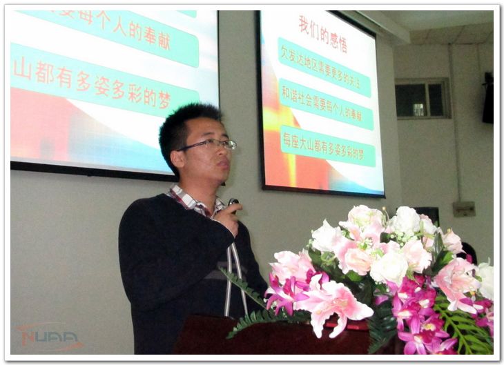 11月12号,能源与动力学院第五届“流动的激情”——2010年暑期社会实践成果展示暨总结表彰大会在将军路校区2110教室隆重举行。能源与动力学院党委副书记王亚彤、团委书记葛琦以及各年级辅导员出席了此次会议。 会上,团委书记葛琦首先介绍了能源与动力学院2010年暑期社会实践工作概况,今年学院暑期社会实践活动丰富多彩,主题鲜明,形式新颖,覆盖面广,更好的达到了体验社会、接受教育、增长才干、服务社会的目的。 大会用形象生动的形式总结了学院暑期社会实践工作中取得的可喜成果,通过“支持区域发展,构建和谐社会”、“心系青奥,情牵世博”、“关注企业,规划人 生”、“心系祖国,投身国防”四个篇章,展示了能源与动力学院2010年暑期社会实践活动成果,使广大同学对暑期社会实践活动有了深入了解,特别是对低年 级同学更是一次社会实践活动的启蒙教育。最后,现场嘉宾为在暑期社会实践中表现突出的团队及个人进行颁奖。 能源与动力学院历年的暑期社会实践活动都得到了学院领导高度重视,在校团委及有关部门的关心指导下,院团委、各年级团总支精心组织,青年学生积极响应,传 承既往优势,体验思路创新,丰富开展形式,完善总结制度,有力推动了学院学生实践活动的开展,很好的促进了广大青年在实践中成长成才。