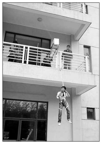 昨天(18日,下同)下午,浙江农林大学交通运输专业大三学生黄河做了一件很“拉风”的事情:他从三楼跳了下来。 跳楼?别担心,是另类的一种实验。他身上带了一件秘密法宝来确保安全,这件法宝就是他和孙涛、毛元亮三名同学共同发明的自动控速高空逃生装置。 “如果上海遭受特大火灾之前,我们的这套发明已经得到推广应用,说不定会有更多的人顺利逃生。”黄河说。 “一旦高楼发生火灾等灾难,被困人员只要穿上安全服,然后将自己吊在该装置钢丝绳的钩子上,就可迅速下降。一个人安全逃离后解开钢丝绳,楼上被困人员还可以摇动摇手柄,钢丝绳迅速回缩,第二个人可以继续逃离,非常方便、快速。即使是有人昏迷,其他人也可以利用这个装置施救。” 黄河展示了逃生装置的核心部分:一个金属盒子,盒子里伸出两根绳索:一根是手指粗细的钢丝绳索,这是发生高楼灾难人员逃生时吊在身上的主要绳索;另一根则跟自行车刹车绳差不多,末端还有刹车环控制器用来刹车。 “利用这个装置,人们可以匀速下降。以一个体重为60千克的人为例,扣上安全带,利用逃生装置逃生时,下降速度是1.8米每秒。”黄河说,这个速度完全可以保证人们的安全。 “现在城市里的高层建筑越来越多,遇到火灾时,如何逃生一直是个难题。”这也是学生们发明这套装置的主要原因。 这套装置已经向国家专利局申请专利并被受理,目前正在审核和公示中。 “制作成本很低,我们自己做做也只要两三百元,以后如果能批量生产,成本就更低了。”黄河说。 据悉,安装非常简便,像空调外机一样直接装在阳台上就可以了。