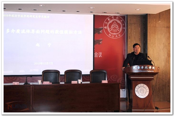 12月7日,航空宇航学院第三届学术科技节暨航空宇航学院第七届研究生学术会议开幕式在A18-529报告厅举行。航空宇航学院党委书记李明成、院长赵宁,副院长陈国平、童明波,院党委副书记孙占久出席了开幕式。 开幕式上,赵宁教授作了专题学术讲座。他通过精彩的学术演讲引导广大同学钻研学术、奋发成才,投身祖国航空事业,担负起实现中华民族伟大复兴的历史使命。 出席开幕式的院领导还为8名优秀论文作者颁发证书。随后,这8名获奖者作了学术报告。本次学术会议通过专家讲座、优秀学生学术报告等方式,为广大研究生同 学提供了广阔的交流平台。 本次学术会议坚持“弘扬科学精神、鼓励求真创新”的宗旨,紧紧抓住“投身航空、志存高远”的主题,共收到院内外论文近60余篇,筹委会通过组织学院内相应专业的专家教授,对来稿进行详细审稿,共推选出8篇论文作为本次学术会议优秀论文。 本届学术科技节还将以校第十三届“CASC杯”大学生科技节为载体,与校研究生学术会议相结合,以各类大学生课外科技作品竞赛为主要内容,举办第三届 “611”杯未来飞机设计大赛、第一届结构力学设计大赛、第三届力学创新设计竞赛、第十届“飞豹杯”航空航天知识竞赛。