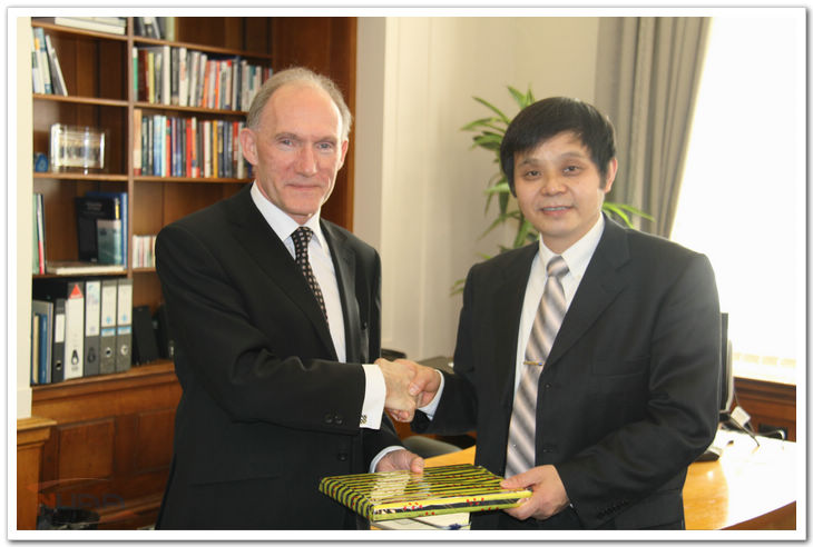 聂宏副校长与英国诺丁汉大学校长Greenaway教授交换礼物