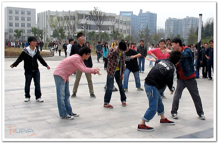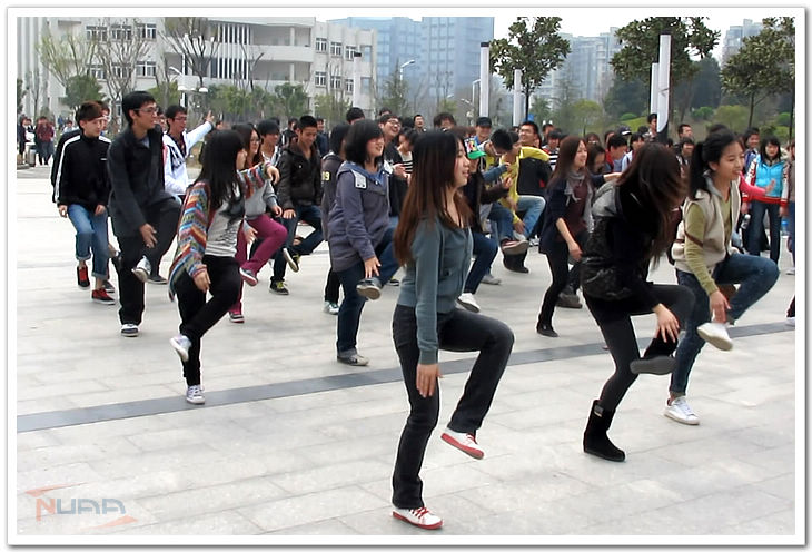 近日,“快闪”抢滩登陆战在江宁校区正式打响。本次活动是将木头人与街舞两种形式快闪相结合,在正午12点准时开始,总计时长5分钟,这是“快闪行动”首次以如此繁复的形式进驻校园,是校园文艺活动中一支新兴的奇葩。活动得到了全校同学的积极参与,参演人员达到百人以上。 “快闪”是“快闪行动”的简称,是新近在国际上流行的一种嬉皮行为,可视为一种短暂的行为艺术。在能源与动力学院团委与校舞蹈协会的通力合作下,将这种新兴的行为艺术——“快闪”带入校园。“快闪”在校园文化推广的核心意义在于活跃研究型院校的娱乐氛围,丰富同学们的课余生活,同时锻炼参演人员的自信心。