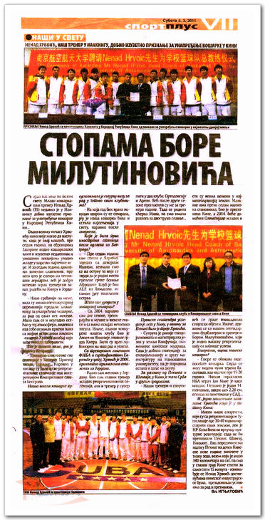 3月5日,《塞尔维亚日报》以“追随米卢的足迹”为标题报道了我校篮球队总教练奈纳得·霍瓦奇先生(Nenad·Hrvoic)。