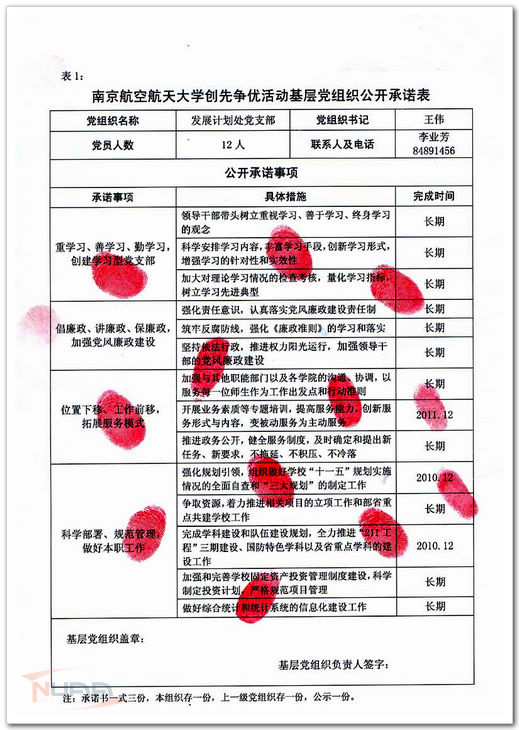 在公开承诺表上按手指印