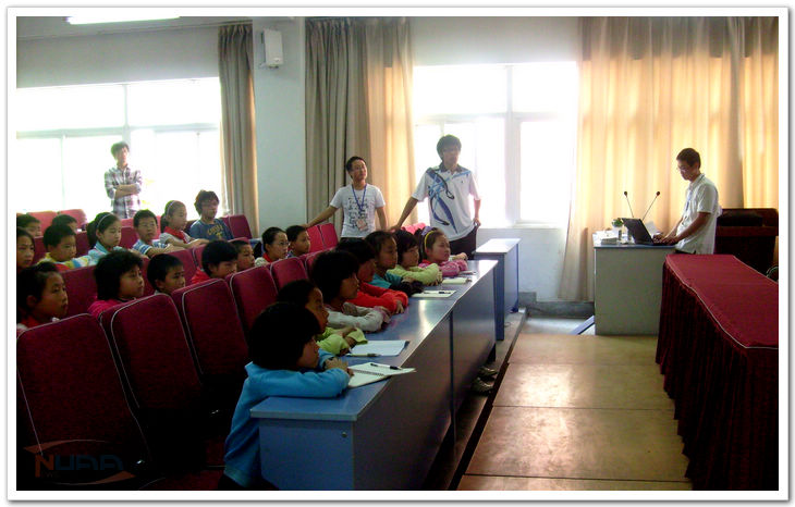 5月7日下午,我校20余名志愿者在校团委青工部的带领下,来到了南京市景明佳园农民工子弟学校开展了“向日葵计划——关爱农民工子女”活动。这是继4月29日开展的关爱农民工子女志愿服务活动后的第二期。 整洁的校园、窗明几净的教室和孩子们的欢声笑语,让志愿者们感觉格外亲切。志愿者首先与孩子们“一对一”结对进行交流,了解他们的生活以及学习的现状。在交谈中志愿者发现,尽管在国家的大力支持下,农民工子女的生活以及教育状况已经有了很大的改善,但孩子们对学习方面的渴求还是非常强烈,志愿者需要做的工作还有很多。 在沟通交流结束后,志愿者们开展了“我与天空有个约会”——航空、航天、民航知识普及活动,现场为孩子们讲解航空、航天、民航知识,志愿者以活泼生动的视频和图片为孩子们讲解“三航”知识,运用专业所学、寓教于乐,现场气氛非常活跃,孩子们积极发言,争相举手回答问题,热闹的气氛感染了在场的志愿者和老师们。 活动结束时,孩子们睁大充满稚气眼睛大声问“哥哥姐姐,你们还会来吗?”“会”,志愿者肯定的回答。