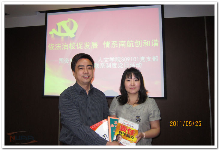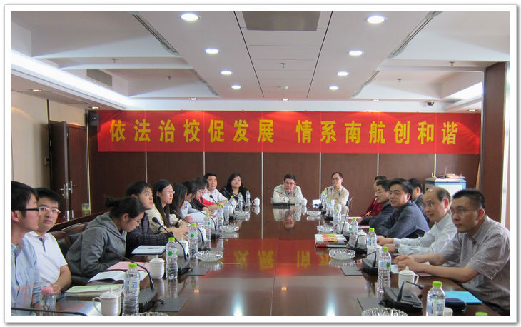 5月25日,国有资产管理处党支部与人文与社会科学学院S09101党支部,在将军路校区1号主楼22楼会议 室联合召开了以“依法治校促发展,情系南航创和谐”为主题的交流座谈会。座谈会由国资处党支部书记黄炳辉主持,人文与社会科学学院党委副书记高小泽、国资 处和S09101党支部师生党员参加了此次活动。 座谈会前,黄炳辉带领师生党员们参观了学校整体规划沙盘模型,让大家了解了学校发展建设规划情况。会上,师生两党支部书记分别对各自支部建设情况以及特色 活动进行了介绍。随后,与会师生党员就如何建设具有南航特色的大学文化、促进学校依法治校及和谐发展、发挥支部战斗堡垒作用与党员先锋模范作用等方面进行 了充分讨论和交流。与会师生畅所欲言,讨论热烈,积极为学校建设和发展献言献策,气氛十分融洽,增进了支部之间的相互了解,拉近了师生们的距离,起到了良 好的教育效果。 会后,黄炳辉代表国资处党支部向学生党支部赠送了《细节决定成败》、《思路决定出路》、《责任胜于能力》等书籍,并与师生共勉。他希望大家在今后的工作、学习中注重细节、理清思路、强化责任,为推进依法治校、建设和谐校园提供贡献自己的力量。