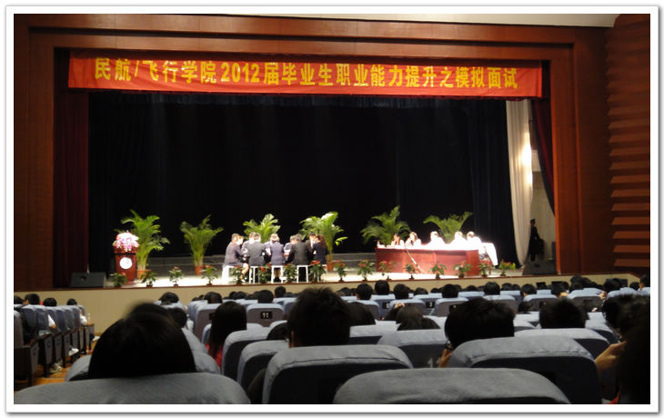 5月26日晚,民航学院在将军路校区艺术中心剧场,举办了一场别开生面的模拟面试活动——将面试搬上舞台,全景、全过程、全方位的向同学们展现求职面试的各个环节。 活动邀请了民航江苏空管分局副局长史政林、东方航空江苏有限公司人力资源部部长林毅、禄口国际机场有限公司人力资源部部长王洪涛,校经济与管理学院党委副书记张捷、就业指导服务中心老师白茹作为面试专家,对10位来自民航学院的2008级学生进行了模拟面试。整场活动井然有序、气氛热烈,同学们纷纷表示在本次公开模拟面试活动中受益颇多。这对即将面临就业的2012届毕业生提供了很好的锻炼机会和学习机会,为同学们今后的就业奠定了一定的实践基础。 面试结束后,民航学院党委副书记刘建成向三位企业评委颁发了校“大学生校外职业指导师”聘书,并对本次活动作了总结。