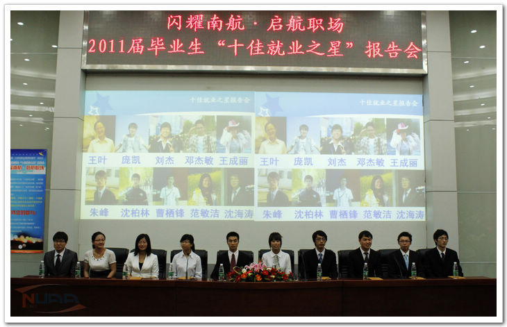 6月1日晚,校第五届 “大学生职业素质拓展月”活动之2011届毕业生“十佳就业之星”报告会,在将军路校区一号楼四楼报告厅举行。研工部副部长朱飞、部分学院党委副书记、校就业指导服务中心老师以及各学院辅导员参加了报告会。报告会由学生处就业指导服务中心主办,自动化学院承办。 报告会上,就业之星用各自不同的就业历程向展示了同一个主题——“机会只留给有准备的人”。不论是选择求职或是决心考研,从事管理或投身科研,成为公务员或加盟五百强。他们的故事都充满了不为人知的艰辛,值得细细品味。 在互动环节中,现场听报告的学生踊跃举手,所提问题涉及多个方面。从面试技巧到简历写作,从考研指导到走出失败,均是普遍困扰学子们的问题,就业之星结合自己的思考与经历给予了精彩的解答。 2011届毕业生“十佳就业之星”报告会作为我校第五届“大学生职业素质拓展月”系列活动之一,得到了广大同学的关注和积极参与,也为许多准备就业的同学解答了疑惑,明确了方向,在师生中反响强烈。“十佳就业之星”报告会虽已落幕,但它所展现的南航学子在追求梦想、实现人生价值上的自信自强会始终传承。