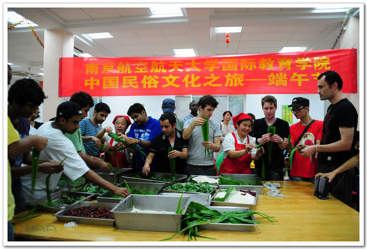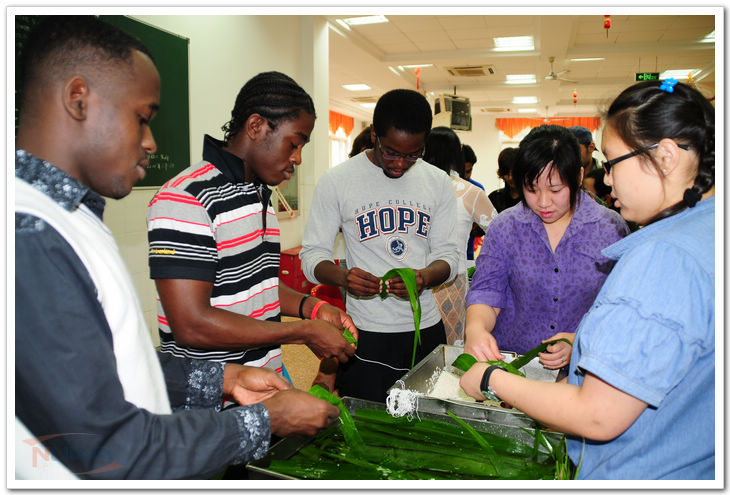 6月6日下午,国际教育学院在将军路校区一食堂举办“中国民俗文化之旅——端午节”活动。该活动吸引了众多在校留学生。 学院副院长范祥涛首先向留学生介绍端午节的历史和民俗活动以及包粽子的步骤。留学生们在后勤阿姨的指导下,和辅导员老师一起学习包粽子。来自印尼的一位留学生兴奋地讲述印尼端午节的风俗,介绍了印尼的粽子和中国粽子的不同之处。而来自加纳的留学生Adeenze-Kangah Justice则说:“想把中国的粽子包得好看实在是太难了。” 参加本次活动的留学生不仅有在校的学位生,还有来自法国、加拿大、韩国等国家的交换生,他们表示能够在中国度过一个地道的端午节感到由衷的喜悦,在回国后一定要向身边的亲朋好友介绍中国文化。
