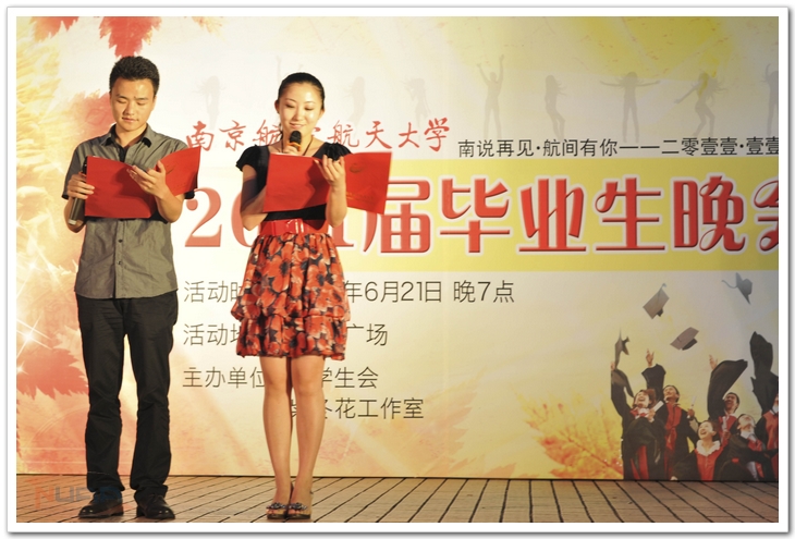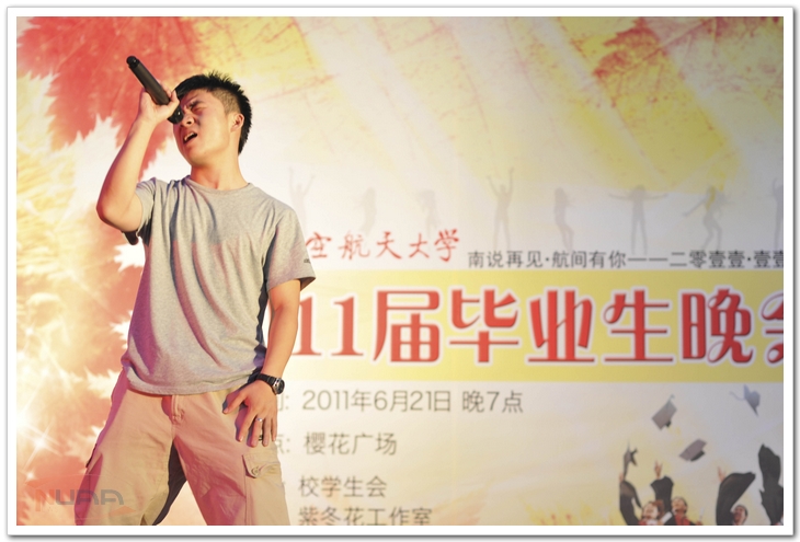 6月21日晚,我校学生会在将军路校区樱花广场举行了“南说再见·航间有你”南京航空航天大学2011届本科生毕业晚会,近200名毕业生冒雨观看了晚会。 晚会以视频和现场节目相结合的形式串联,由梦想起航、荣誉之光、青春沉淀、花落成实、畅想未来等五个主题组成,分别代表2011届毕业生大一、大二、大三、大四的大学生活以及对未来的展望。大一时热情洋溢、充满梦想;大二时努力拼搏、追求荣誉;大三时挑灯回看、思考人生;大四时面临离别、泪流满面……这些大家熟悉的画面与心情,在本场晚会中再次一一展现,引发现场毕业生同学们的强烈共鸣。 “南说再见·航间有你”南京航空航天大学2011届本科生毕业晚会在蒙蒙细雨中完美落幕。毕业不是结束,是新征程的开始。愿毕业的南航学子一路顺风,前程似锦!