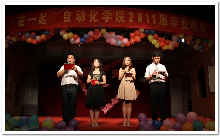 6月21日晚,自动化学院2011届毕业晚会在明故宫校区大学生活动中心举行。学院党委副书记沈伯秀、毕业班班主任和毕业班辅导员参加了此次活动。 晚会由班级展示拉开帷幕,0307级的18个班级视频相继播放,让大家回忆了过去相处的温馨美好。各班班长和团支书作为班级代表也陆续走上红地毯,并在回忆墙上签名留念。沈伯秀致开幕辞,她代表学院全部党政领导对本次毕业晚会的隆重开幕表示祝贺并和同学们一起回顾了四年的大学生活,对自动化学院2007级四年的总体表现给予充分肯定,并希望毕业生们珍惜在一起的每一刻,毕业后不忘同学之间的互帮互助,保持和母校的经常性联系。 晚会持续了两个半小时,共分为“心•盛放”、“心•温暖”、“心•在一起”三个篇章。热辣的开场肚皮舞就将晚会的气氛引至一个小高潮,“忆之夏•梦之帆”系列活动颁奖环节隆重又热闹,话剧《非雷勿扰》的精彩演出让现场爆发出一阵阵热烈的欢呼声和喝彩声。由辅导员邹望蠡和陈慧斌等的舞蹈将气氛引至最高潮。 温暖的吉他弹唱、温馨的女生歌曲串烧让大家激动的心情开始慢慢平静,501班的校园情景剧将毕业的伤感缓慢流露,国防生班206和502的大合唱《我的好兄弟》、《老男孩》,展示出了军人刚毅威武的风采,唱出了兄弟间不舍离别之情。 晚会在全场毕业生的合唱中缓缓落下帷幕,大家互相拥抱,签名留念,依依惜别。
