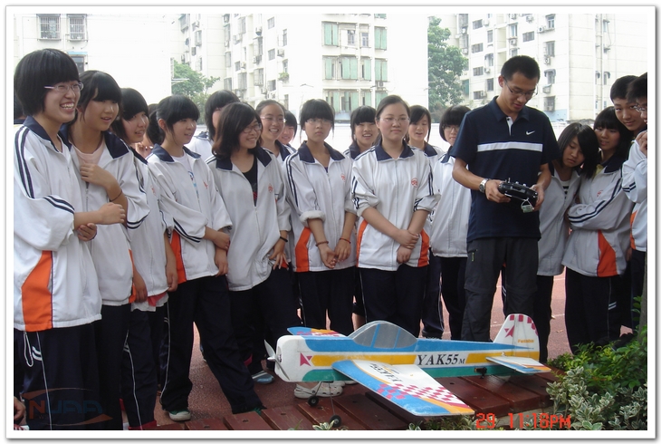 6月29日上午,人文与社会科学学院研究生志愿服务团队再次走进南京市第66中学,开展“创先争优勤奉献,公民教育育英才”公民教育系列活动第三场“航模表演暨航模知识普及活动”。66中副校长王颖出席活动,近100名学生代表参与活动。 此次活动由人文与社会科学学院杨旸同学带队进行航模表演和航模知识宣讲,他曾多次获得全国性航模比赛一等奖,现为学校航模队负责人,在航模表演方面有着丰富的经验。飞机模型在他熟练的操作下,时而盘旋前进,时而直冲云霄,时而俯冲而来,66中学生代表各个看得目不转睛,掌声不断、赞叹不已。表演结束后,中学生们围绕在杨旸身边询问感兴趣的问题,杨旸也就航模制作、航模操作、航模维护等各种技术问题进行了详细讲解。 活动结束时,志愿者们借庆祝建党90周年之机,向66中同学提出希望,鼓励他们学好科学技术知识,提升综合素质,积极向党组织靠拢,做党和国家未来发展事业的接班人。