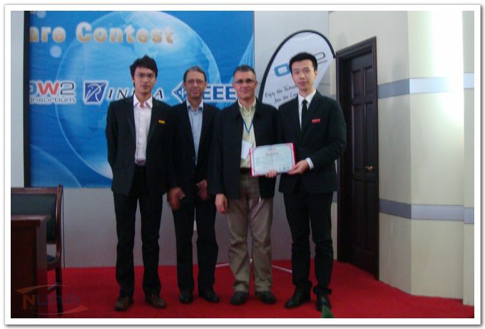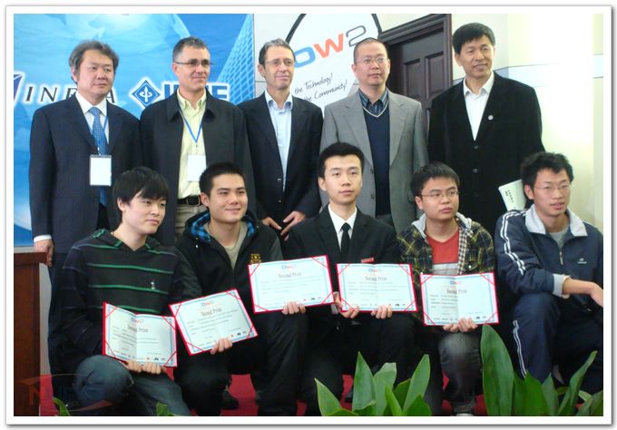 10月13日,在北京科技大学举行的国际OW2 Programming Contest 2011颁奖仪式上,由我校计算机科学与技术学院院长黄志球教授指导的一支队伍获得银牌,创造了我校学生参加该项赛事的历史最好成绩。据悉,在决赛中我校参赛队与来自北京大学、复旦大学、北京航空航天大学、国防科技大学、中科院软件研究所、巴西圣保罗大学等全球知名高校的十八支参赛队进行角逐,最终来自中科院软件研究所的一支队伍获得金牌,我校参赛队以第二名的成绩与来自北京大学、国防科技大学及中科院软件研究所的五支队伍获得银牌,来自北京大学、北京航空航天大学及复旦大学的另外四支队伍获得铜牌。 在此次颁奖答辩环节中,参赛队领队、计算机科学与技术学院研究生唐佳俊同学介绍了参赛项目及所在科研团队软件工程研究工作的现状与发展,获得了OW2首席执行官Cedric THOMAS的高度评价。期间Cedric THOMAS与我校学子就项目团队、后续发展规划、如何与现有OW2开源项目结合等问题进行了深入的交流。 OW2起始于2002年1月,由法国国家信息与自动化研究院(INRIA),Bull以及法国电信(France Telecom)联合发起,已经逐步发展成为一个成熟的跨越三大洲的开源组织。旗下久负盛名的项目有:Acceleo、ASM、Bonita、EasyBeans、JavaService、JORAM、Orchestra、Bench4Q、SpagoBI、Xwiki等。今年是该项赛事继2009年、2010年后第三次在我国举办,由欧洲和中国的专家发起,共同促进中欧技术交流及合作,同时也在世界范围内为学生提供了一个展示编程能力的平台。本次参赛获奖,也是我校连续三年获得此项赛事荣誉,得到业内专家的一致肯定与好评。 ![]() ![]()
