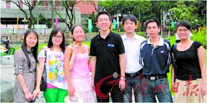 陈填烽(中)和学生们在一起。(通讯员供图) 穿着格子衬衣、牛仔裤、运动鞋,样子像个大男孩——初见陈填烽,你会以为他是个普通学生。实际上,出生于1981年的他已经是暨南大学化学系副教授、博士生导师。2008年,陈填烽从香港中文大学生物系毕业,获得博士学位后回到母校暨南大学任教。同年,27岁的他被遴选为博士生导师,也成为暨南大学最年轻的博士生导师。陈填烽说,作为年轻人,他的行政事务没那么多,得以长时间奋战在科研第一线,经常和学生一起泡在实验室,手把手地帮学生修改英文论文。