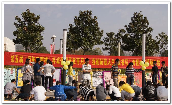 11月17日中午,我校在将军路校区灯光广场举行了“11.17邀您一起”海报大赛作品展示与现场手绘活动,该活动是我校第五届“超细玻璃棉”杯诚信感恩教育月的重要组成部分,由材料科学与技术学院承办。大赛作品围绕诚信主题,通过海报的形式生动地展示了我校大学生对诚信的认识和理解,进一步提高了广大学生的诚信意识。 自11月1日起,大赛组委会共收到形式多样,构思新颖的55幅海报作品,由学院学生代表最终评选出13幅获奖作品,广场展示共分展板展示和照片墙展示两个部分。现场手绘以连环画的形式展现,借助成语故事“一诺千金”的情节,由获奖作者代表进行13幅海报的现场创作。 活动现场吸引了众多学生驻足观看。看过海报展之后,很多同学表示要关注诚信、践行诚信,学校举办类似的教育活动很必要。此次活动不仅能引发大家对诚信的思考,还得到了《现代快报》等媒体的报道。