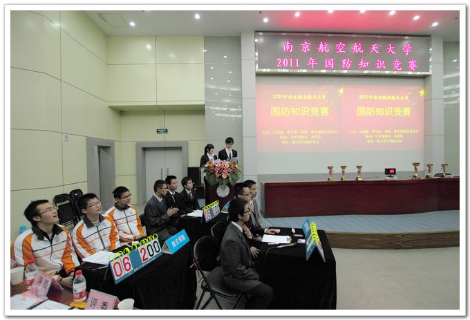 11月24日晚,我校2011年国防知识竞赛在将军路校区一号楼四楼报告厅拉开帷幕。校人武部副部长李辉、学生工作处副处长侍旭、校团委副书记方正、将军路校区管委会办公室主任缪长宗、空军选培办吴恒波少校以及各参赛学院学生工作负责同志等出席本次活动。解放军理工大学李冀湘大校应邀担任本次比赛的评委。另外,河海大学、江苏海事学院等多所南京高校的军事爱好者协会均派代表前来观摩交流。 本次活动由校人民武装部、学生工作处、校团委、将军路校区管委会主办,空军选培办以及各学院协办,校大学生国防协会承办。参加比赛的共有六支代表队,分别是航空宇航学院、能源与动力学院、机电学院、材料科学与技术学院、航天学院和国防生模拟营。 本次竞赛题目涉及面广,涵盖了从国防历史、当今世界军事格局以及兵器知识等多方面内容;题型新颖,包括文字题、图片题、视频题,同时还设置了演讲环节,为学生提供了一个抒发爱国情怀的舞台。各代表队展现出良好的精神风貌和丰富的军事知识,不断将现场气氛推向高潮。 最终,航天学院获得一等奖,机电学院、材料科学与技术学院获得二等奖,航空宇航学院、能源与动力学院以及国防生模拟营获得三等奖。同时,国防生模拟营还获得了最佳组织奖。 本次活动旨在宣传国防教育,普及国防知识,促进校园国防文化建设,增强南航学子的国防观念和历史使命感,是国防教育月活动的一项重要内容。 ![]() 比赛现场 ![]() 评委点评 ![]() 获奖选手合影 |