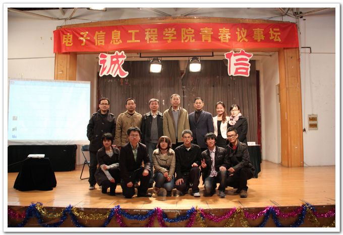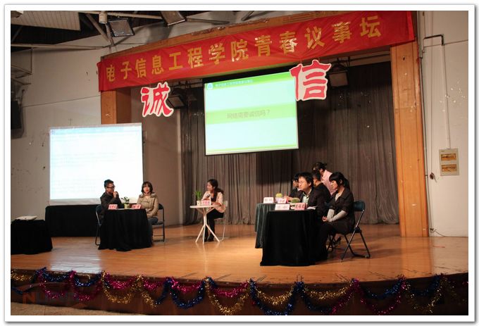 11月30日晚,电子信息工程学院青春议事坛公开展示活动在将军路校区大学生活动中心举行。学院党委副书记季海群、教授代表潘明海、校纪委办主任楚广兴、校团委副书记方正、校大学生资助管理中心主任刘红旗以及电子信息工程学院300余名同学参加了活动。中国新闻网、江苏教育电视台等媒体对此次活动进行了现场报道。 本期议事坛以“我与诚信,谁弃谁?”为主题,旨在通过对近期热点问题进行多角度讨论,进一步增强在校大学生的诚信意识。活动分为网络诚信、社会诚信和校园诚信三个讨论模块。台上六位同学分别针对“金庸被死亡”“地震谣传”“小悦悦事件”“抄作业现象”“"学术诚信”等话题展开了热烈讨论,台下同学通过微博、举牌等形式参与讨论。活动过程中,在场嘉宾对同学们的发言进行了现场点评。 校纪委办主任楚广兴在点评时表示,诚实守信教育对于当代大学生的发展具有重要意义。他结合现实案例,使在场同学们了解到诚信问题不仅是一个道德层面的问题,随着国家诚信系统的逐步完善,未来将在制度乃至法律层面对个人诚信进行约束。当代大学生应强化诚信意识,做诚信表率,并以此助推自身事业发展。他寄语在场同学“说诚恳的话,办踏实的事,做认真的人”。 活动最后,现场三百余名同学共同进行了“内诚于心,外信于世”的诚信宣誓,活动在热烈的气氛中落下帷幕。 ![]() ![]() ![]()