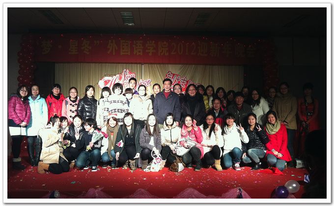 12月22日晚,外国语学院“梦星冬”迎新年晚会在将军路校区艺术中心多功能厅举行。学院院长何江胜、党委书记刘健荣、副书记庞小燕、班主任代表,全体辅导员、学生参加了本次晚会。 晚会现场,外国语学院全体男生的集体展示拉开了晚会的序幕。随之而来的便是来自每个班级展示环节。班级展示由各班自行编排,全体班级成员参与完成,形式多样:话剧、舞蹈、合唱、小品轮番上演,现场欢声不断。 晚会中间,外院学子用自己的方式为一年来辛勤的老师送上了年终祝福。送给“最有气质的老师”、“最有故事的老师”、“最幽默的老师”,一张张卡片上写满了学生对班主任、任课老师的祝福。 颁奖环节,刘健荣为2011年度院超级星生、三好学生、优秀学生干部、最佳进步奖获奖学生颁奖,何江胜为全院师生送上了新年的祝福。 ![]() |