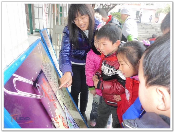 经过数个小时的车程,航空宇航学院的志愿者们到了这所梅山的偏僻小学,并为他们组织了四个活动:青奥知识互动、青奥馆知识简介、“我的青奥馆”水彩创想绘以及“我的爸妈”小作文朗读。青奥知识互动中孩子们都积极踊跃、争先答题;青奥馆知识介绍时孩子们认真听讲,专注的眼神表现出对知识的渴望和对南京青奥会的期待;在“我的青奥馆”水彩绘时,他们用小小的水彩笔画出了自己心中的青奥。