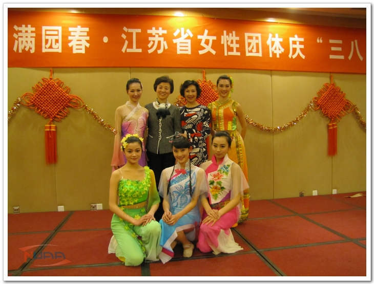 3月7日下午,我校大学生文化艺术指导委员会秘书长、艺术教育中心主任、艺术学院副院长杨莉莉教授作为江苏省女高知联代表,参加了由江苏省妇联举办的“满园春色”三•八国际劳动妇女节联欢会。江苏省妇联主席张京霞参加了活动。 在这次活动中,杨莉莉教授带领我校青年教师路漫漫、李珊珊以及三位艺术学院学生,精心编排表演了由《爱莲说》、《版纳三色》和《茉莉花》三段舞蹈组成的联舞,每人穿着不同颜色的服装,舞姿翩翩,花团锦簇,正应了“春色满园”的活动主题,赢得在场所有嘉宾的掌声。