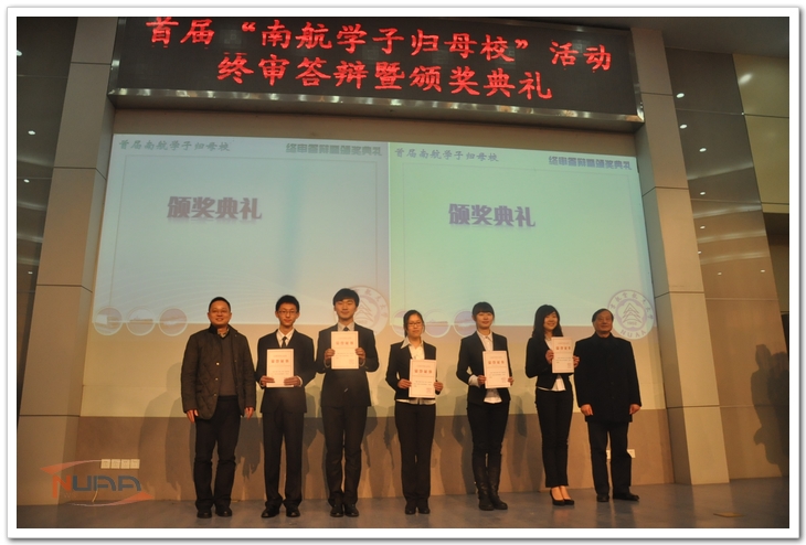 3月18日,首届“南航学子归母校”活动终审答辩暨颁奖典礼活动在将军路校区一号楼报告厅隆重举行,我校党委常委、副校长吴庆宪、经济与管理学院正处级调研员罗士礼、学生处副处长、招生办主任孙雷、学生处副处长侍旭、人事处副处长张启钱、教务处副处长阎志军,资产经营公司副总经理江爱华,校团委副书记方正,将军路校区党政办主任缪长宗等部处负责人及招生宣传老师出席了本次活动。 在活动现场,吴庆宪致辞:同学们作为南航的大使,为南航与中学的沟通架起了友谊的桥梁,是我校目前正在推进的大学与中学教育衔接工作的又一主要力量。经过初审评选出的13支优秀团队代表在场展示了回归母校的活动成果: “明阳”团队的宣讲让海门千人尚雅楼座无虚席、“泗水亭畔”团队带回了中学校长亲手泼墨写下的祝福“春风化雨,桃李争妍”、“南望初航”和“携手共进”团队受到了当地市电视台和市报的报导。学子们精彩的答辩、精湛完美的展示、饱含深情的演讲,让整个报告厅充满了感动与温暖。最终,由现场嘉宾为参赛队员颁发了“校园文化/科创宣传魅力剪影、精彩视频、优秀征文、宣传大使、优秀团队、明星团队”等奖项,材料科学与技术学院和民航(飞行)学院则赢得了由吴庆宪副校长颁发的优秀组织奖杯。