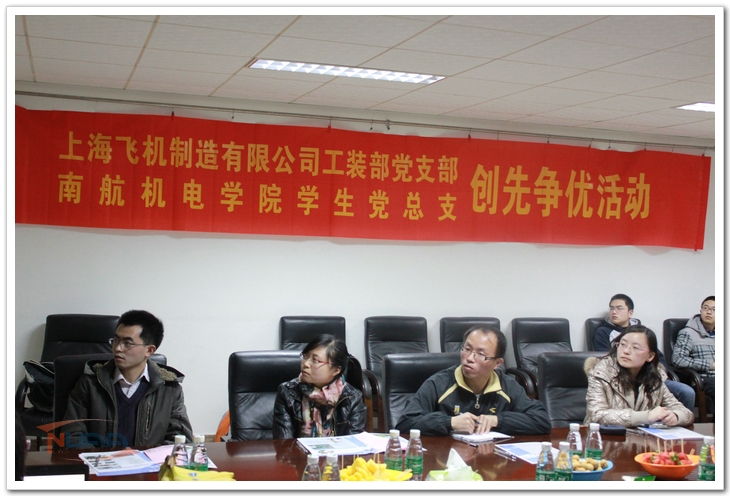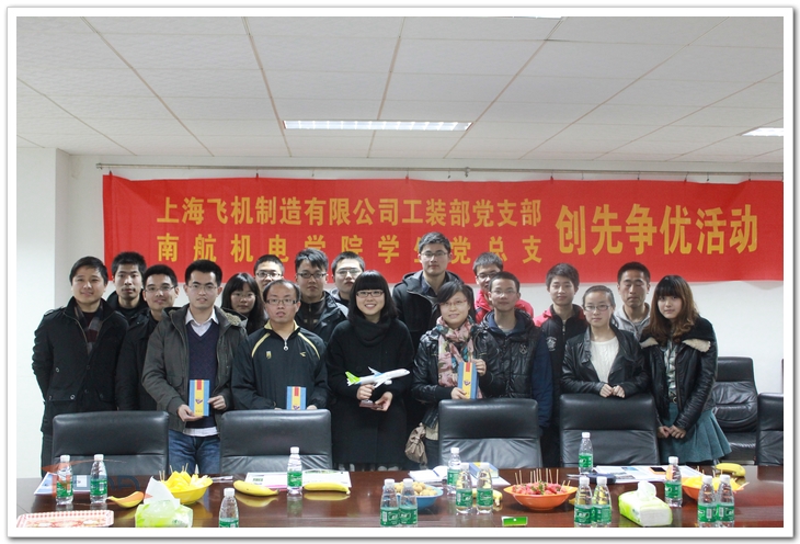 2012年3月24日,机电学院学生党总支与上海飞机制造有限公司工装部党支部开展了创先争优交流活动,会议在机电学院15号楼会议室举行。上海飞机制造有限公司工装部党支部的党员代表、机电学院学生党支部书记代表参加了本次交流会,会议由机电学院研究生辅导员成杰主持。 交流会上,成杰向与会嘉宾介绍了机电学院创先争优活动开展的宗旨、目标、成效以及具体工作内容,同时着重讲解了学院党建特色工作以及在学院学风建设方面重点开展的 “先锋班级”创建活动、“两帮促五变”以及“阳光工程”等多项扎实的基础工作,并就本学期学校正在开展的基层组织建设年活动做了介绍。