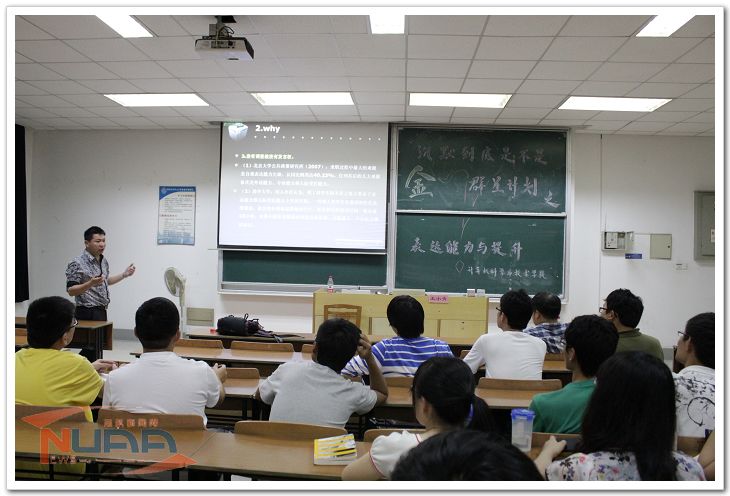 5月31日晚,计算机科学与技术学院“群星计划”之“表达能力”宣讲会暨“菜根谈”第二期在将军路校区6201教室举行。本期主讲人是有“三青将军”之称的计算机学院10级辅导员王小青老师,主题为“沉默到底是不是金”。全院大一至大三年级部分学生到场听讲。 宣讲会上,王小青老师用提问的方式引出主题,与在场同学交流了在表达过程中遇到的困难。他以“5W2H”的分析模式为宣讲主线,阐释了表达能力的内涵,锻炼表达能力的意义,提升表达能力的途径,集中介绍了我校“五说”行动等品牌活动。宣讲过程中,他不仅从自身成长经历出发为同学们讲述提升表达能力的技巧和经验,还列举了周恩来、丘吉尔、林肯、胡适等名人故事,激励同学们勇于表达,用智慧表达。此外,他还利用情景剧、“模拟面试”等互动环节,让同学们在实践过程中体会表达之乐、感悟表达之妙、提升表达之力。