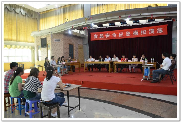 本次演练编分总指挥、现场指挥、救护转运、现场保护、维稳善后、事故调查、信息发布等小组分别模拟校医院、保卫处、学生处、食品药品卫生监督局、集团质监办、饮食中心,食堂等部门协同配合的流程处理实施过程。活动中主要演练了学生在用餐后,感到身体不适,到医院就诊,经过检查确诊为疑似食物中毒,医生立即上报医院领导并通知饮食中心负责人,饮食中心立即赶赴现场,并按规定启动应急处理预案、校医院启动绿色救护通道和现场封存、食品留样、事故调查等涉及多部门的流程协调实施过程。