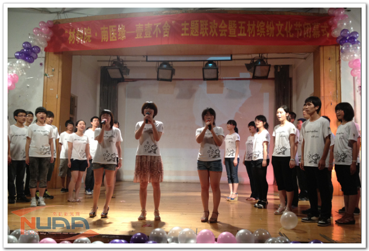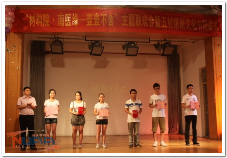 6月10日晚,“材料院·南医缘”主题联欢会暨五材缤纷文化节闭幕式在将军路校区大学生活动中心隆重举行。材料学院党委副书记许爱华、南京医科大学基础医学院党委副书记张鸿来以及学院全体辅导员和学生参加了活动。 晚会期间,举行了五“材”缤纷文化节颁奖仪式,对在文化节期间表现优秀的集体和个人给予了表彰。 晚会上,材料学院的同学们向即将离去的南医联合培养班的同学表达了自己的不舍之情。材料学院党委副书记许爱华向南医大基础医学院党委副书记张鸿来赠送了印有南医联合培养班所有同学照片的“青春纪念册”,将现场气氛推向了高潮。