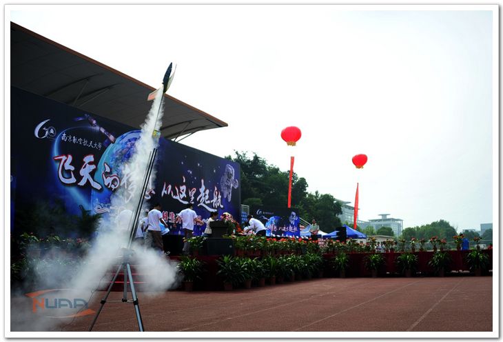典礼最后,校领导与全体本科新生合唱了《南京航空航天大学校歌》,在校歌雄壮的旋律中,“飞天的梦想,从这里起航”南京航空航天大学2012级本科生开学典礼圆满结束。搭载着4538名新生梦想的航模飞机一飞冲天,新一届的南航人必将在这片天空飞的更远,飞的更高!