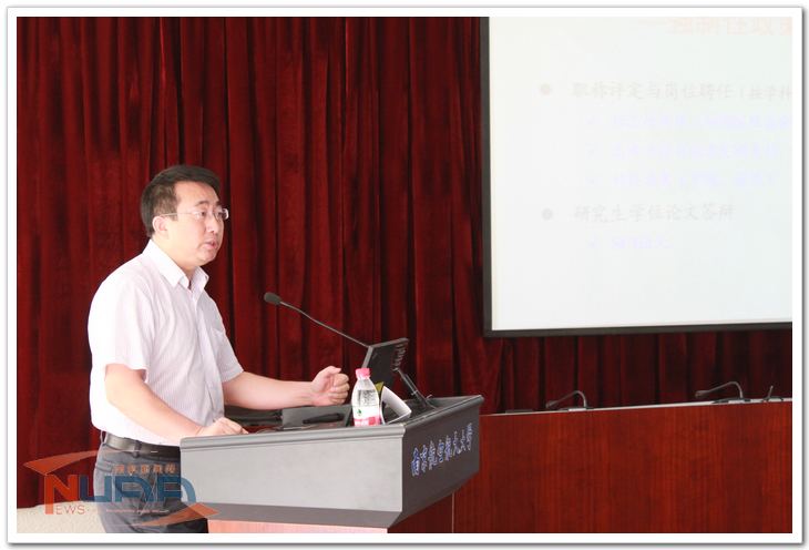 会上,首先由科技部介绍我校科技工作情况,孙永荣副部长汇报了我校国防科研工作情况和产学研合作工作情况,吴咏梅副部长汇报了我校基础研究科研工作情况,苏州副部长汇报了我校人文社科研究工作情况、科技创新基地建设工作情况和科技奖励工作情况。他们分别从科研项目、科研团队、科研基地、科研产出等不同方面介绍了近年来我校在科研方面取得的成绩、存在的问题和今后的发展思路。最后宋迎东部长从科研形势的总体定位、“十二五”科技发展目标以及发展思路对策三个方面全面阐述了对我校科研发展思路,并重点从调整科研政策、完善管理体系、营造科研环境和明晰若干思路等四个方面提出我校科研进一步发展的想法和建议。