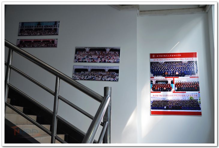 为了迎接学校六十华诞,为了让院友感到如家的温暖,10月8日,自动化学院师生员工正将一幅幅精心设计的历届毕业生合影在智能楼内展出! 六秩风雨,征程如歌。进入智能大楼,信步拾级而上,从一楼到五楼,右手边粉刷一新的墙壁上依次展出了南航建校以来自动化学院历届学子风采——