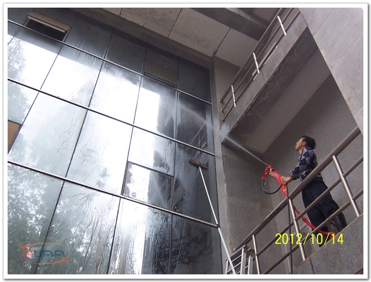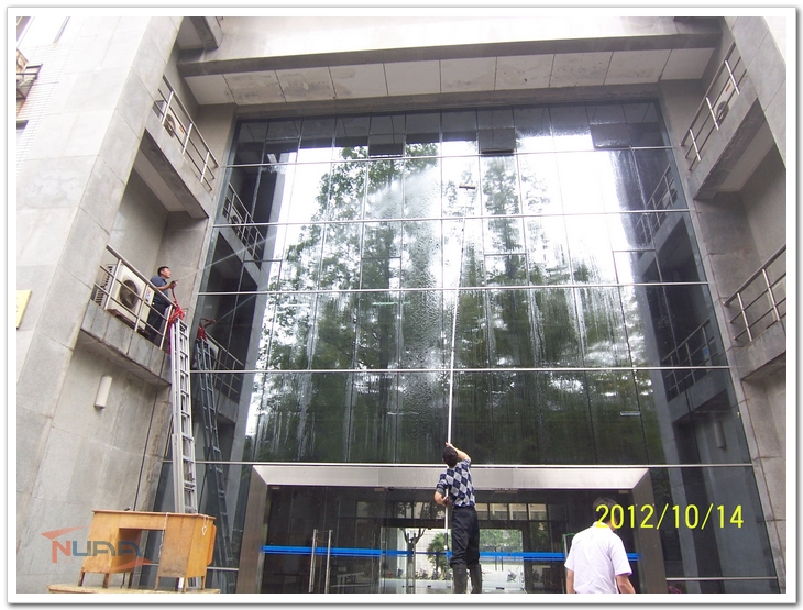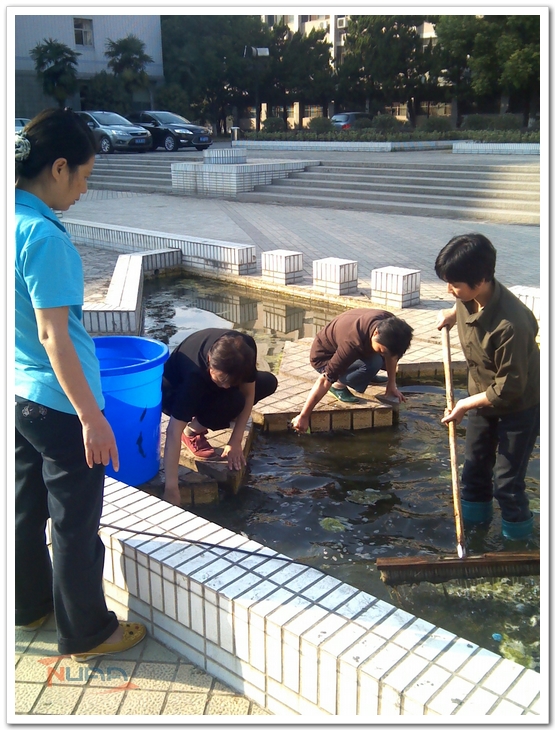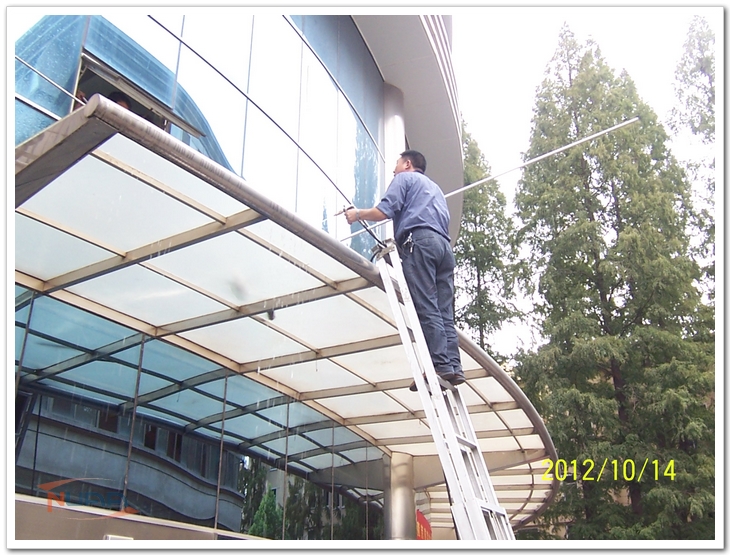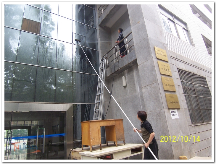 在学校60周年校庆即将到来之际,明故宫物管部在部门负责人的带领下,发扬能吃苦、能战斗、能奉献的后勤精神,立足本职,人人争做校园美容师,于校庆前集中突击,攻坚克难,全面投入到楼宇保洁美化的各项工作中去。 校庆期间,航空航天馆将对外开放。明故宫物管部于10月12日开始组织大量人力物力,集中清理了航空航天馆。航空航天馆面积大、飞机多,日常没有安排保洁工作,馆内已经积累了厚厚的灰尘,清洁时扬起的灰尘呛得人无法呼吸。物管员工迎难而上,用清洁工具逐一清理地面、桌子、飞机外壳及零部件,经过二十多人五天连续奋战,航空航天馆已经焕然一新。 智能楼南北两面玻璃幕墙有250多平米,近3层楼高。清洗工作强度高、难度大。物管领导放弃周六、周日休息,全程现场指挥,严把安全关、质量关,挑选精干人员按照清洗计划,首先搭起脚手架,然后用加长型的玻璃清洁工具及喷枪同时清洗幕墙。第一天清洗完以后,第二天又精雕细琢,进行了更为精细的保洁,圆满地完成了玻璃幕墙的清洗工作。 为了校庆期间校园整体环境的清洁,物管部领导统筹安排、亲自带队,在保证安全、保证质量的前提下,组织员工清洗了动力楼、15号楼、18号楼及综合楼的雨棚。物管中心员工们经过两天加班加点的突击,清洗了科学馆前的喷水池,员工们不顾脏臭的池水,穿上胶靴下到池子中,用钨丝球一块一块地擦洗。如今,科学馆广场前已经焕然一新。