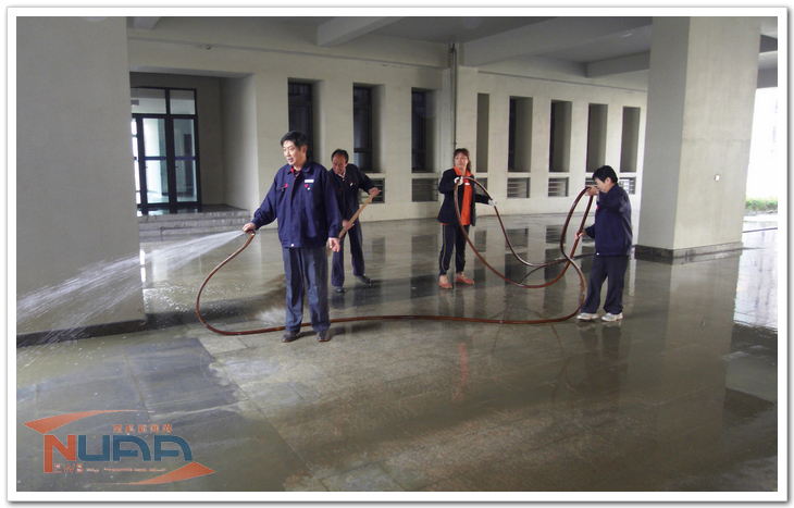 做好校区保洁工作。根据集团领导统一安排,为了更加体现整洁优美的校园环境,中心副主任徐益民组织全体员工,将管辖的各学院楼和教学楼周边草坪上的石头、有色物体及树枝全部清理干净。虽然工作量很大,但是大家都很仔细,绝不放过任何一个杂物,坚信“没有最好,只有更好”。19日,徐益民带领部分员工给民航学院大厅前的平台彻底洗了个澡。为了不影响师生进出,特地利用晚上时间加班加点,冲洗平台。经过两个小时的奋战,终于把平台冲洗干净。大家衣服湿了,膀子也酸了,但是没人喊过一声苦,叫过一声累,为了迎接南航校庆,再辛苦也是值得了。