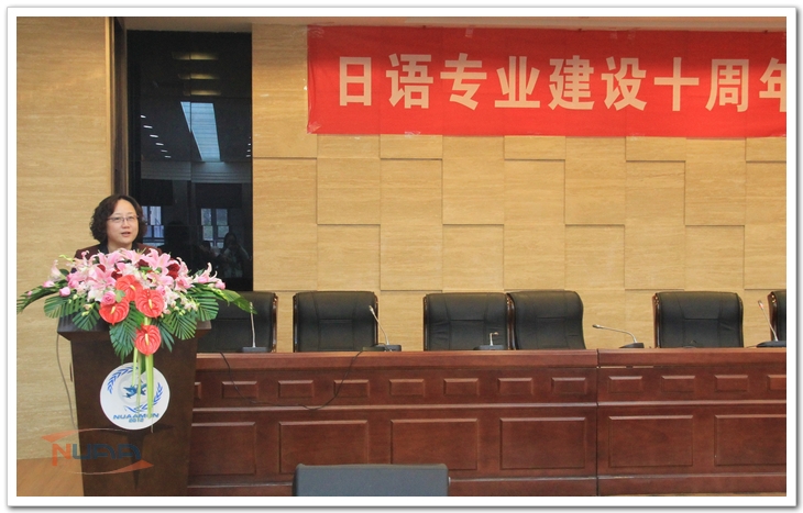 10月21日上午,外国语学院日语专业建设十周年庆典在学院国际会议中心成功举办,学院党政领导、日语系领导、专业教师、外籍教师、历届校友以及在校学生参加了庆典。 外国语学院院长何江胜教授从概况、教学、科研等方面介绍了学院近年来发展情况,回顾了日语专业建立之初的不易以及随后的逐步成长壮大过程,引起了在座师生的强烈共鸣。 院党委书记刘健荣发表了热情洋溢的庆典致辞,高度评价了日语专业建设十年取得的成就,肯定了教师们在学科发展和人才培养上的不懈努力,总结了历届学生在竞赛、就业和升学方面的突出成绩,同时对各届毕业生的回校表示了热烈的欢迎。 随后校友代表虞宁漪发言,她回忆了美好的校园生活,表达了对学院和老师的感谢,同时也结合毕业后的经历给在校生提出了许多宝贵建议。 在此次庆典上,许多想回校而因各种原因未能如愿的校友通过订制花篮、发送贺信等形式表达了祝贺之意、感恩之情。 最后,何江胜院长代表学院与毕业生代表郝绍文互赠了礼物。