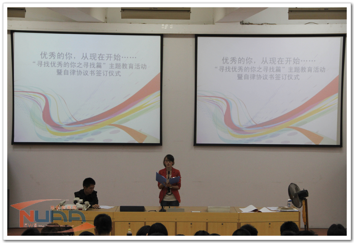 10月26日,民航/飞行学院2012级学生在将军路校区开展了“优秀,从现在开始”——“寻找优秀的你之寻找篇”主题教育活动暨自律协议书签订仪式。活动以“优秀”一词为主线,通过时事政治探讨、校庆活动总结、优秀校友经验交流等部分,阐释了如何才能成为更加优秀的人,最后同学们为自己设定了优秀自我的目标,并自发签订了自律协议书,表达从现在开始要向着自己的目标努力前进的决心。