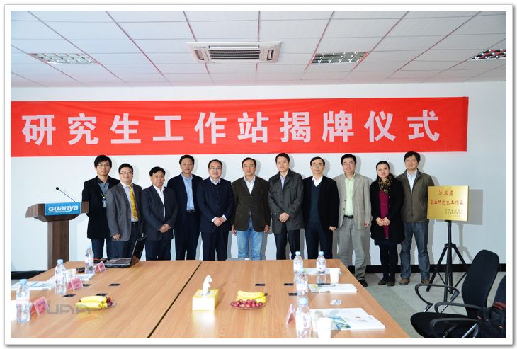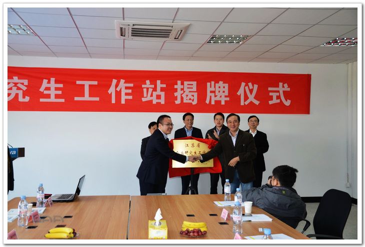 江驹与张海波共同为省企业研究生工作站揭牌并合影留念。