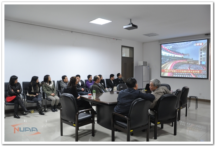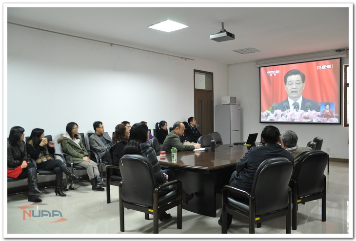 11月8日上午,中国共产党第十八次全国代表大会在北京人民大会堂隆重召开,胡锦涛同志代表十七届中央委员会向大会作报告。航天学院召集全体教职工观看了十八大开幕式直播,大家认真聆听了胡锦涛同志所做的工作报告。全体教职工通过观看此次直播,对国情、党情有了更深入的认识与了解。