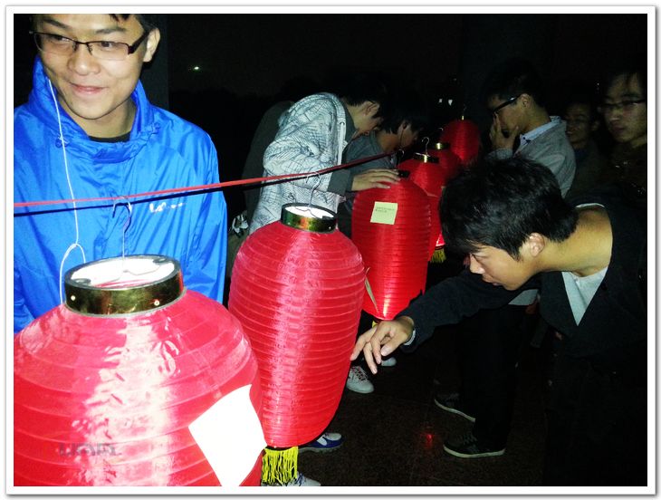 11月8日,中国共产党第十八次全国代表大会在北京召开。在南航校园里,航空宇航学院的同学们举办了“灯谜当中藏愿景,党史国情统知晓”的灯谜竞猜活动喜迎十八大的召开。 学院组织以灯谜的形式讲述党的传奇故事,设置趣味问题,让同学们在猜灯谜的同时增进对党史国情的了解。活动的前期准备阶段由学生党员们将灯谜送入各个寝室,在同学们答题的同时广泛收集他们对自己未来的期望和对党对祖国的美好祝福。11月8日晚上,因天气影响原定于在砚湖进行的活动改在3号教学楼旁进行,淅沥的小雨并未阻挡同学们高涨的热情,大家积极参与到猜灯谜、写祝福的活动中来。十八个灯谜,代表着十八大,十个灯笼,代表着风雨同舟的十年,八盏莲花灯,选取中国传统的吉利数字表达祝福。点点火光映着一张张年轻的面庞,折射出大家对未来的美好展望和对党对祖国的真情祝愿。