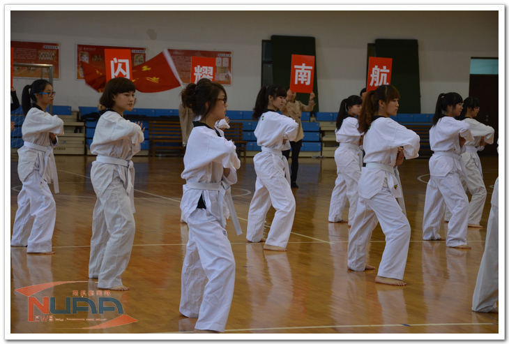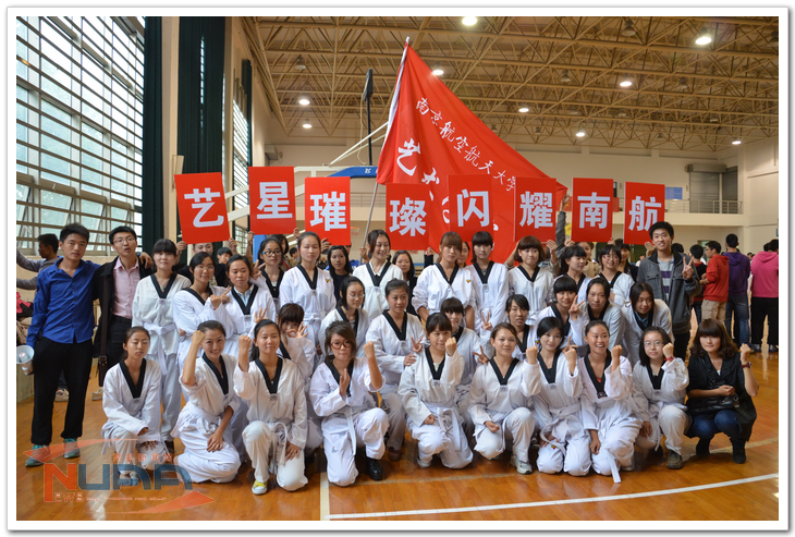 11月3日,校体育部在南航将军路校区举行了“新生跆拳道、太极拳”比赛,艺术学院55名12级新生代表学院参与了这两项比赛,并取得了两个一等奖的好成绩。 比赛现场,艺术学院的参赛方阵踏着整齐的步伐进入比赛场地,场边的啦啦队们也积极的为运动员们呐喊助威,“艺新璀璨,响彻南航”的加油声响彻全场,尤其是跆拳道方阵,相较于理工科学院由大部分男生组成的方阵,虽是清一色的女生,但不仅气势上没有输,而且在整体协调性和动作上明显占优,队员们精彩的表演赢得了现场观众的阵阵掌声。