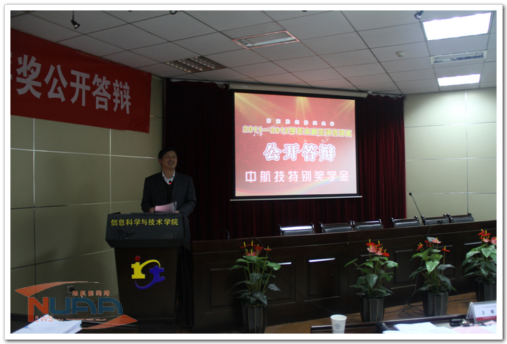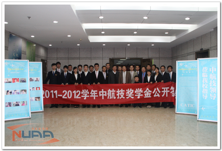 11月9日,2011-2012学年中航技奖学金公开答辩评审会在我校明故宫校区举行。中国航空技术进出口有限责任公司总经理助理兼售后支持部部门经理唐建明、南京航空航天大学副校长吴庆宪中国航空技术进出口有限责任公司财务部经理彭远迅、中国航空技术进出口有限责任公司人力资源部部门经理唐星、中国航空技术进出口有限责任公司财务部发展财务处处长马翼、中国航空技术进出口有限责任公司人力资源部李钧、南京航空航天大学学生处处长王晖、研工部副部长朱飞、学生处副处长侍旭等中国航空技术进出口以及我校相关部门领导参加了答辩会并担任答辩评委。评审会由我校学生资助管理中心主任刘红旗主持。