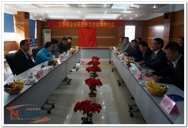 会议结束后,江驹和王先正在大家的见证下,共同为“南京航空航天大学与江苏唐邦机电有限公司研究生工作站”揭牌。