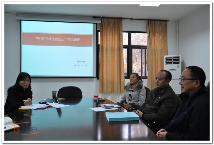 11月22日,航天学院召开党政联席(扩大)会议。会议对2012届就业工作进行了总结,分析了2013届就业工作的形势和困难,并探讨应对措施。航天学院全体党政领导、系主任、毕业班班主任和辅导员参加了会议。会议由航天学院党委书记刘建成主持。 学院党委书记刘建成指出,首先要认清形势、其次要调整心态、最后要把握核心工作。他说,全院上下要统一思想、全员参与、不怕困难,挖掘资源,拓宽航天学院毕业生的就业渠道,保质保量地完成2013届毕业生就业工作。 院长陆宇平提出了三点要求:第一,所有专业老师都要关心自己的学生,关心学生的职业生涯和就业是教师的天职;第二,各系要探寻就业机制、对学生的考研、就业做好正确的指导;第三,就业工作要与学风建设相结合,专业建设要与学生的职业生涯规划相结合。航天学院党委副书记戴泉晨对2012届院内外毕业生就业工作进行了简单总结,并对2013届学院毕业生就业形势进行了分析和对策建议。她指出,航天学院就业工作面临毕业生人数增加、用人单位要求更高的现状,国防单位招聘指标缩减,就业工作形势较为严峻。