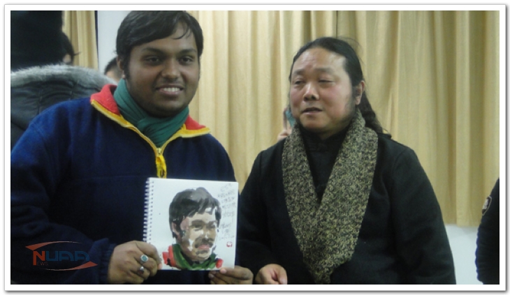 在艺术学院一间普通的教室,讲台上老师拿着画笔,随机抽取在场的师生担任模特,进行人物写生。这场景看上去就像艺术学生的一堂绘画课,但实际上这是南京航空航天大学艺术学院为全校学生开设的“艺致讲坛”公开讲座系列活动,而台上手持画笔的就是主讲人——南航艺术学院美术系王立庆教授,他为大家带来的是主题名为“从速写到设计的跨越”的专题讲座。 讲座主要分为讲述,示范和点评三个方面。王立庆结合自己多年的绘画和设计经验谈到了速写与设计的关系。作为国家一级舞台美术设计师,他主持参与了2008年北京奥运会“中国故事”江苏馆——祥云小屋总设计,也曾担任过2009年庆祝建国60周年首都北京国庆群众游行江苏彩车——《祖国吉祥,人民如意》和上海世博会江苏宣传周——宝钢大舞台《锦绣江苏》的总设计师,拥有十分过硬的技术手法和大型设计的经验。也正是这些积累与个人经历让王立庆有了自己对于艺术的理解和表达,表达“不要做一个设计家,而要做一个艺术家”的观点。 在接下来的示范环节,现场的两名外国留学生依次充当了速写模特,王立庆在短短的二十分钟内完成了速写,人物兼具形象与神韵,栩栩如生。现场的同学也都纷纷拿起了画笔。简单的两幅速写只是一场热身,王立庆还搭起了画架,在油画布上作画,为前来聆听讲座的两位艺术学院老师进行人物速写并题字留恋。 “艺致讲坛”系列活动是艺术学院为迎接南京航空航天大学60周年校庆和10周年院庆特别推出的一系列学术讲座活动。迄今为止,已成功举办八场讲座,主讲人由艺术学院美术系、音乐表演系和新闻系的老师担任,围绕自己的专业领域和研究角度确立主题。“艺致讲坛”讲座主题涵盖范围广泛,针对戏剧,绘画,书法,设计和艺术理论等角度展开。与其他讲座不同的是,很多时候主讲人们都采用了与学生互动,现场作画这样的方式形象的表达自己的观点,吸引了广大的南航学生的参与,获得了师生的一致好评。 艺术是美,美是自由的呼吸。每个人都有享受艺术,品味艺术的权利。秉承着这样的信念,艺术学院一直以来都在为普及和提升大学生文化艺术素质贡献力量,“艺致讲坛”活动是南京航空航天大学艺术学院的一个品牌教育载体,并面向全校学生开放。艺术学院党委书记、院长张捷在采访中谈到“艺致讲坛的缘起是来自艺术学院的院训“学立、道通、艺致”学院尝试通过集聆听、观看、参与、体验与交流等方式为一体的立体式教学模式引入传统艺术讲堂,进一步加强师生间的互动,实现教学相长,特别是学生文化艺术素养的提升。同时,张捷也表示艺术学院会一直讲这样的品牌教育活动坚持举办下去,带动校园文化建设,将理工科与人文更好的结合起来。 ![]() ![]() ![]()