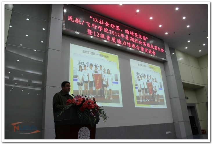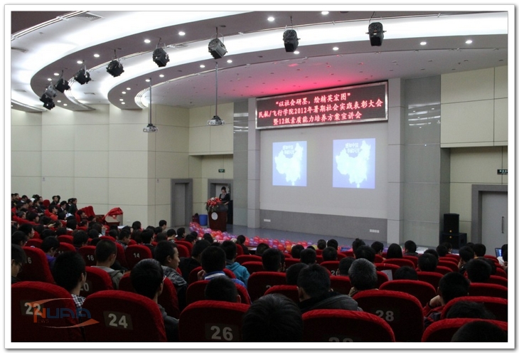 11月20日晚上,民航/飞行学院2012年暑期社会实践表彰大会暨12级素质能力培养方案宣讲会在将军路校区隆重举行。民航/飞行学院党委副书记高健、团委书记傅成成、各年级辅导员及12级全体同学参加本次大会。 大学是学生走向社会的预备期,丰富学生的专业知识、提高其综合素质以期更好的融入社会、服务社会,培养“高素质公民和未来的开拓者”成为了育人的目标导向。为了更加直观、形象地向民航/飞行学院2012级新生解读素质能来培养方案的意义和重要性,学院创新性的将社会实践表彰大会与2012级素质能力培养方案相结合,在向同学展示暑期社会实践成果的同时用形象化的实例展现当代民航人应具备的各项素质能力。结合学院育人的职业导向,提炼了六大精英素质,将本次大会分为四个篇章。理想信仰篇“御风天涯,花开四方”中,“征蓬团队”探寻帕米尔高原上边防生活,民航小伙用心中的理想克服重重困难;“海角七号”团队以情联系两岸,践行着“海峡一家亲,共促两岸情”的共同信仰。责任意识篇“关爱残弱,花开阳光”中,“爱心通途”团队绘制千里盲道图,只为盲人多一份平安。学习能力与文明礼仪篇“书本内外,花开梦想”中,民航人在实践中学习,向基层百姓学习,启迪同学乐于学习,不断完善自我。表达能力与体艺素质篇“献礼校庆,花开无疆”中,伶言集礼的航迹天下团队通过多种方式表达对母校的热爱。
