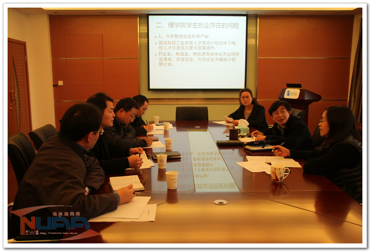 全体参会人员对理学院所面临的就业困难作了深入的探讨,大家就课程设置、专业思想、就业指导等各个方面提出了就业改进措施。其中,施大宁指出全院上下要统一思想、全员参与、挖掘资源,拓宽理学院毕业生的就业渠道,保质保量地完成2013届毕业生就业工作。同时,施大宁也提出,就业是一个长期工程,要从低年级开始抓,全院老师共同参与,要更深层次开展理学院博雅教育,增强师生交流、促进学生就业。