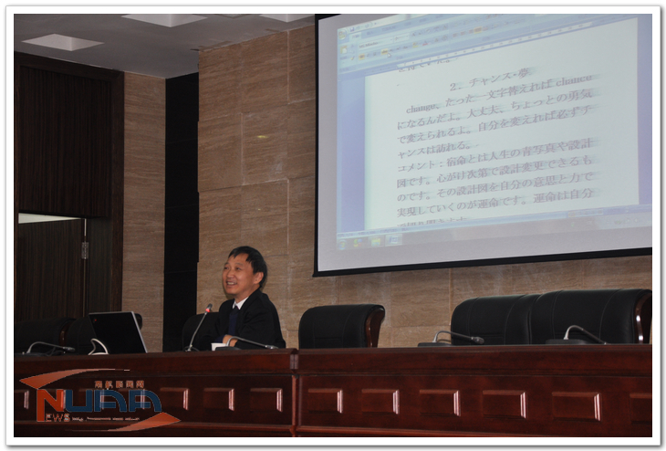 11月29日,在将军路校区,国内日语领域领军人物、贵州财经大学、淮海工学院两所高校外国语学院院长,中国日语教学研究会理事,江苏省日语研究会副会长赵平博士带来了一场以“艰难阻绝,成我外语,筑我人生”为题的精彩讲座。来自外国语学院日语系的学生和众多对外语学习抱有浓厚兴趣的非专业学生济济一堂,讲座高潮迭起,掌声雷动。