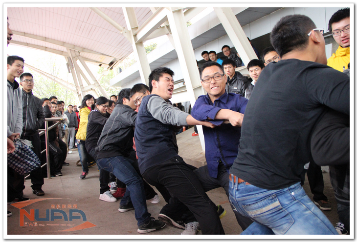 比赛分为必选项目和选择项目。必选项目分为:阳光伙伴和拔河比赛,选择项目为:插旗拔旗、100米夹球跑迎面接力、跳大绳。必选项目重在培养新生的班级凝聚力,选择项目重在培养新生的团队意识和协作能力。经过近三个小时的激烈角逐,三个班级分获团体一、二、三等奖。